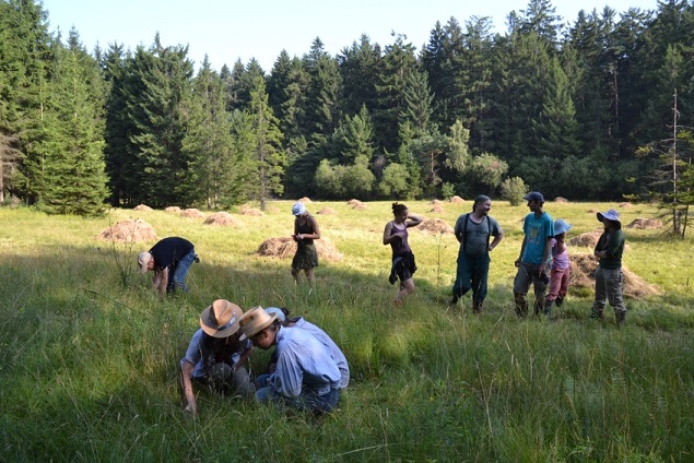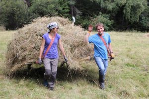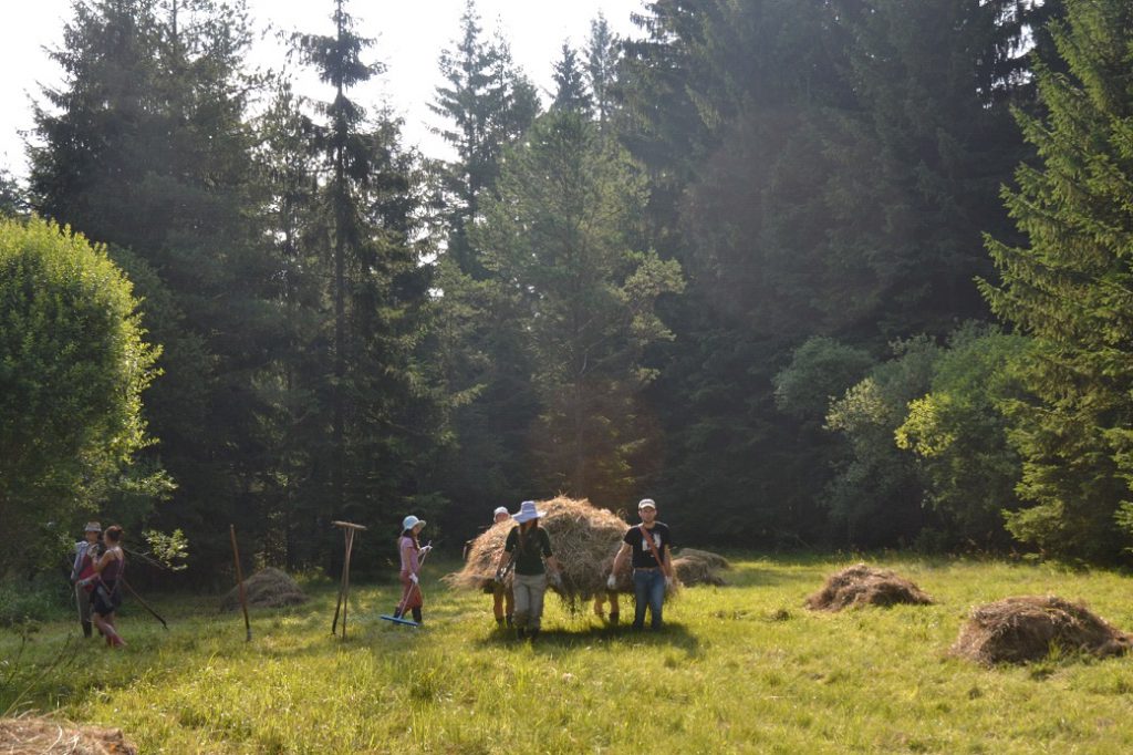 Ráďa nás nakonec namotivovala, že když dokončíme určitý kus louky ještě, tak půjdeme ku obědu. Tempo kosení se tedy trochu zrychlilo, ale následně přišel Jirka, že je zbytečné tento díl louky obdělávat, jelikož by se jednalo už spíše o takovou kosmetickou úpravu. S velkou nevolí od této práce upouštíme. Jirka některé z nás musel od kosení z louky násilím tahat dokonce.