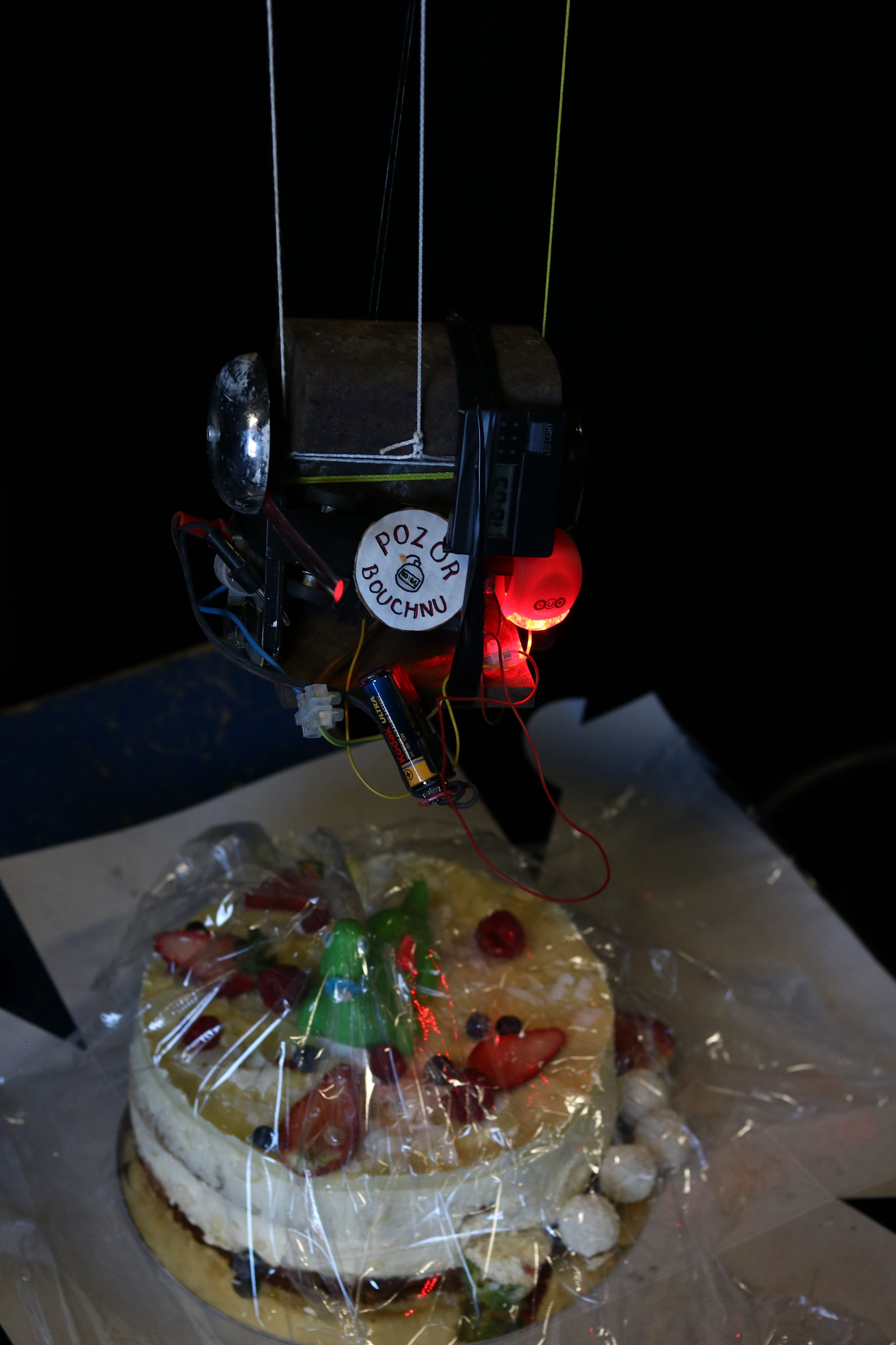 Našťastie sa oslavujúcim, poctivo plniacim všetky úlohy, podarilo oddialiť čas výbuchu torty natoľko, že nálož mohla byť zneškodnená a torta s brontosaurom navrchu mohla byť slávnostne rozkrájaná.