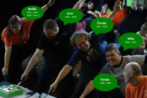 Po úspešnej záchrane a následnom veľmi úspešnom úplnom zmiznutí torty nasledovala spomienková časť oslavy, dalo sa nahliadnuť do starých kroník, premietali sa fotky a videá z akcií dávno minulých, dokonca spomienky živo sprítomnila aj módna prehliadka škótskych krojov použitých na niektorom z táborov.