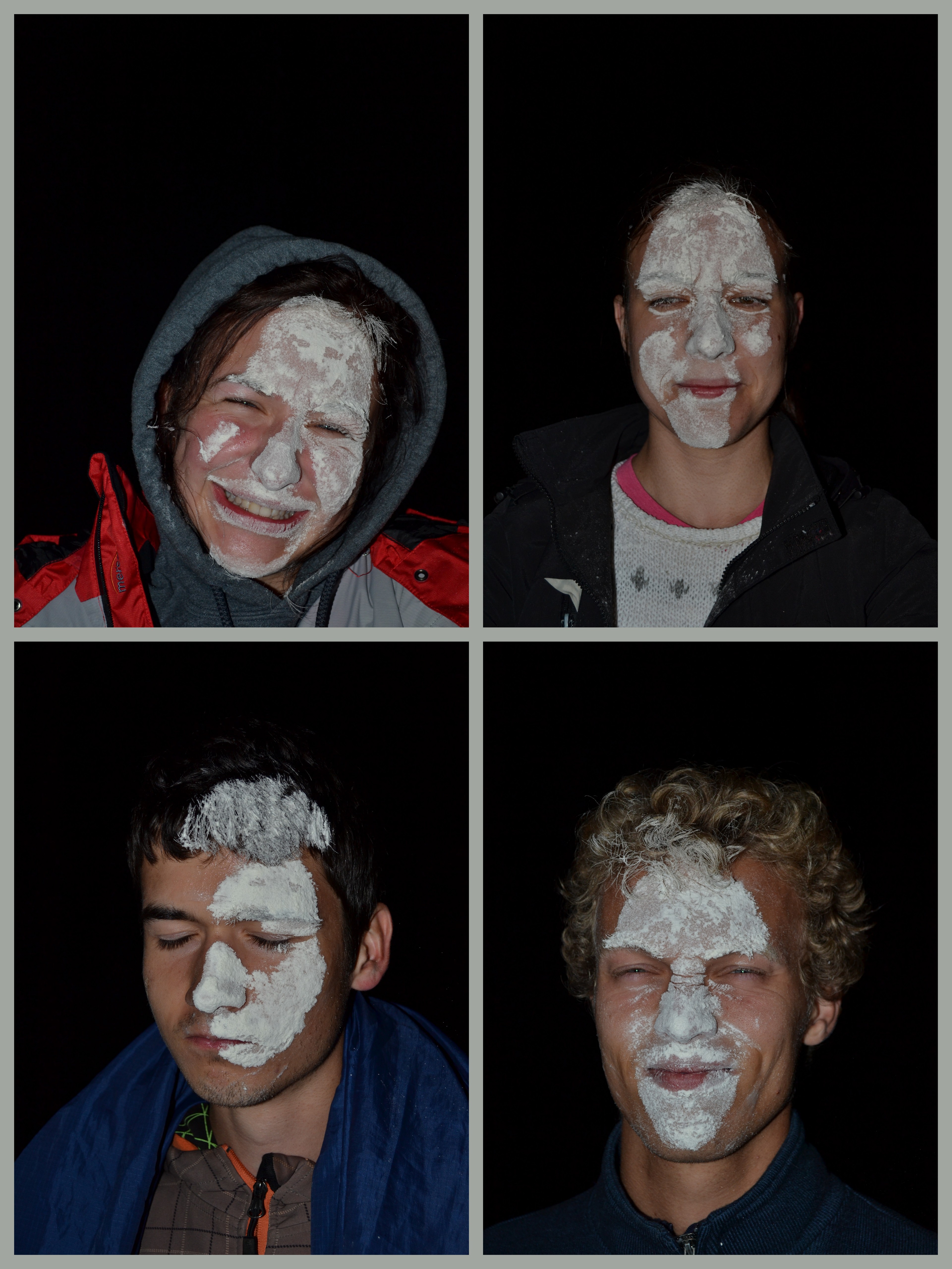 Nikomu z nás se valně nechtělo a neochotně se trousíme ze stanu ven. Ještě větší obličeje děláme na proceduru moučení tváře.