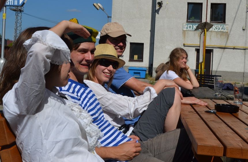 Na jejich záludné otázky odpovídá hlavně Jirka a my ho doplňujeme. Žínky z M. Š. Jsou docela v pohodě a za chvíli nás pouštějí ze svých spárů, a tak vyrážíme ku obědu.