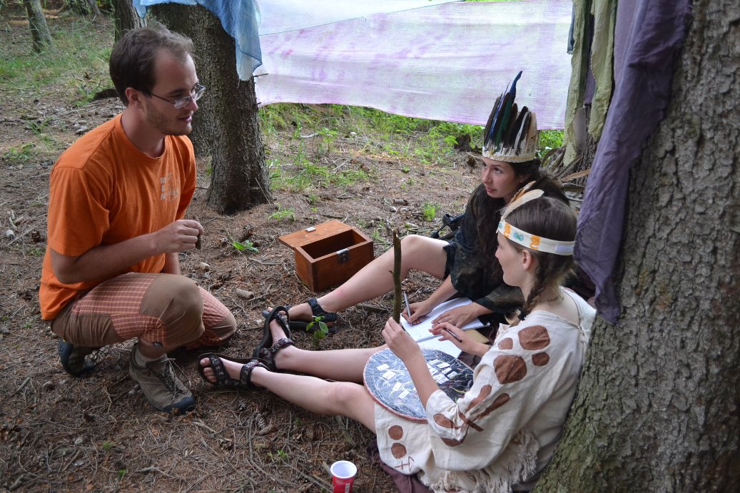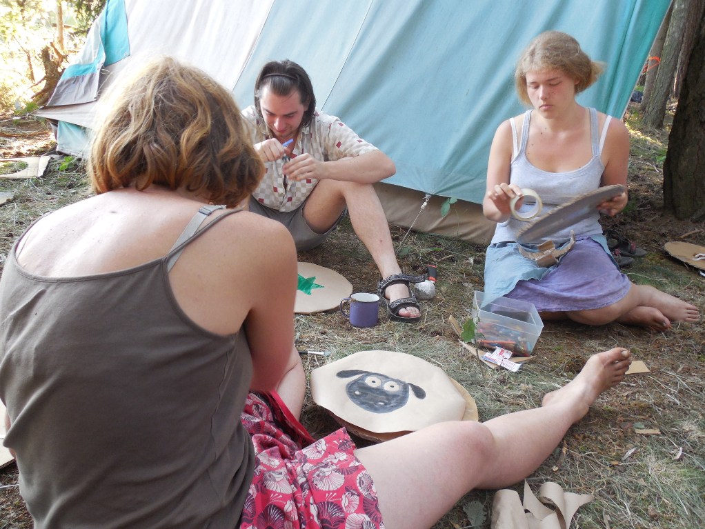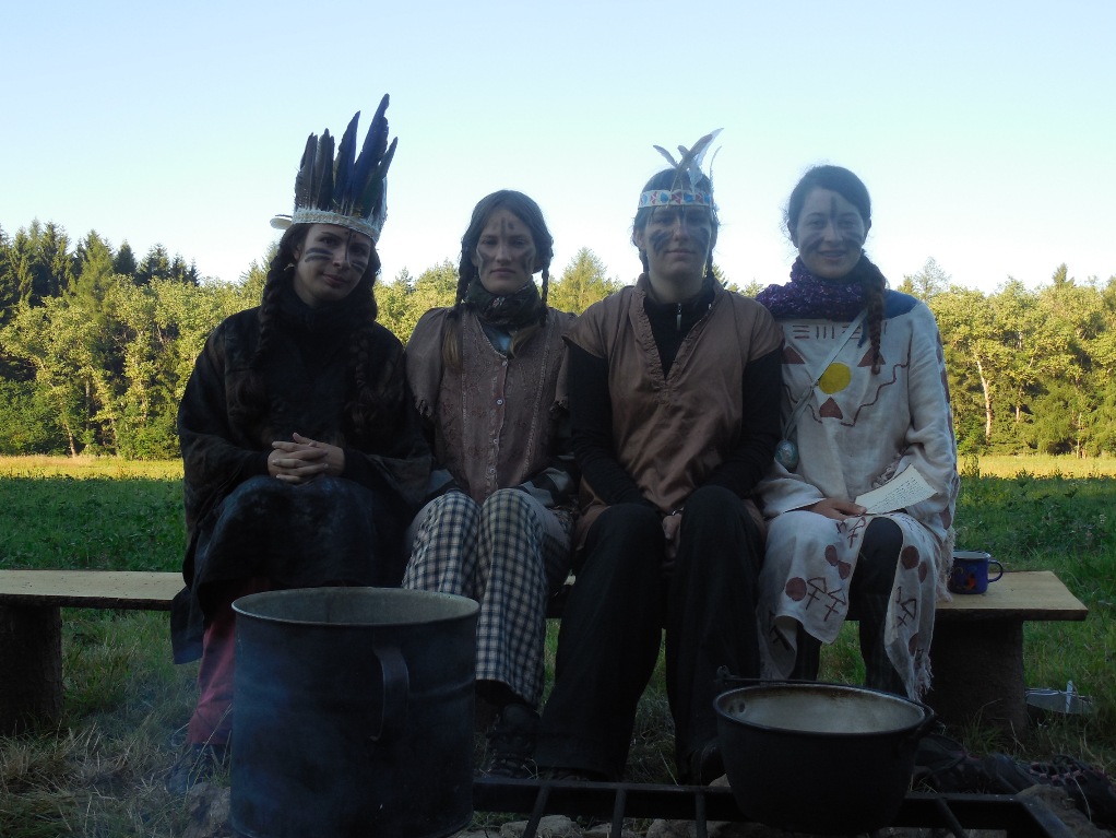 Vymóděni moučným obličejem a se spacákem a karimatkou v rukou jsme byli vysláni do vymezeného území kol tábora, abychom našli vhodné místo pro nocleh i pro úkryt před mytágy.