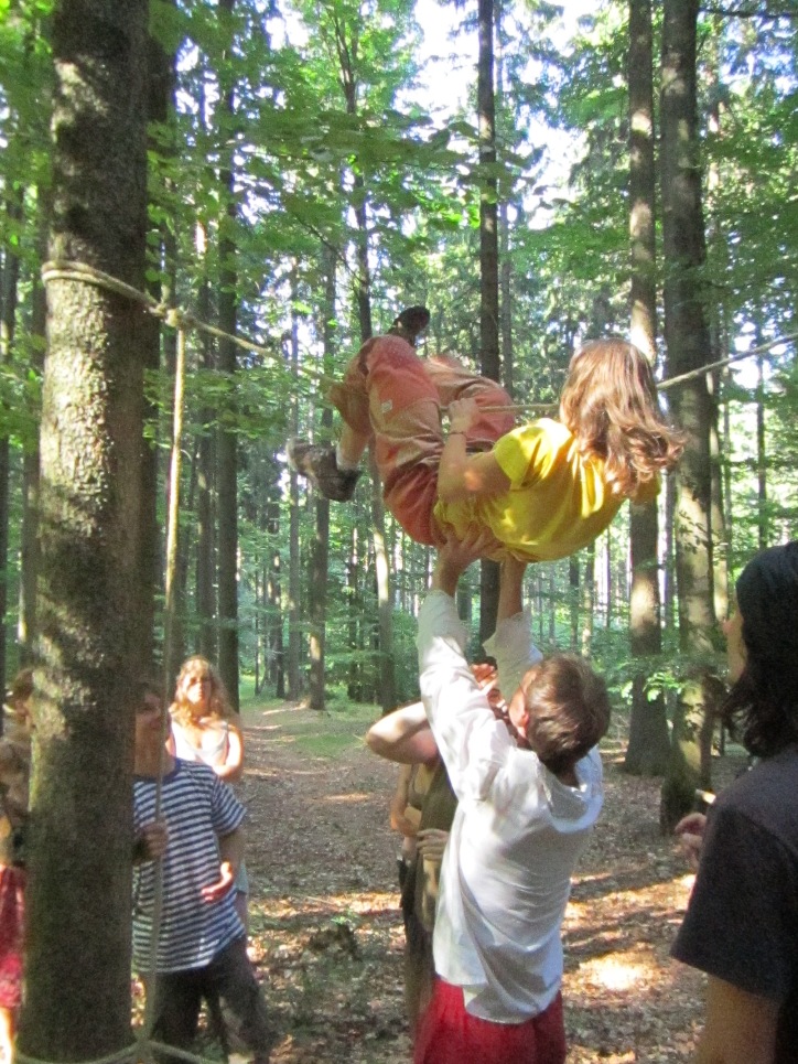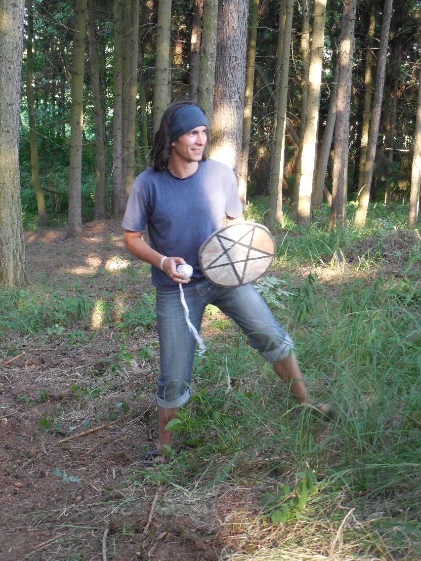 Když jsme se konečně všichni vyhrabali ze stanu, tak nás Ráďa žene na louku, kde si odbýváme ranní rozcvičku v podobě hry kámen, nůžky, papír. Myslím, že to vyhrály kameny.