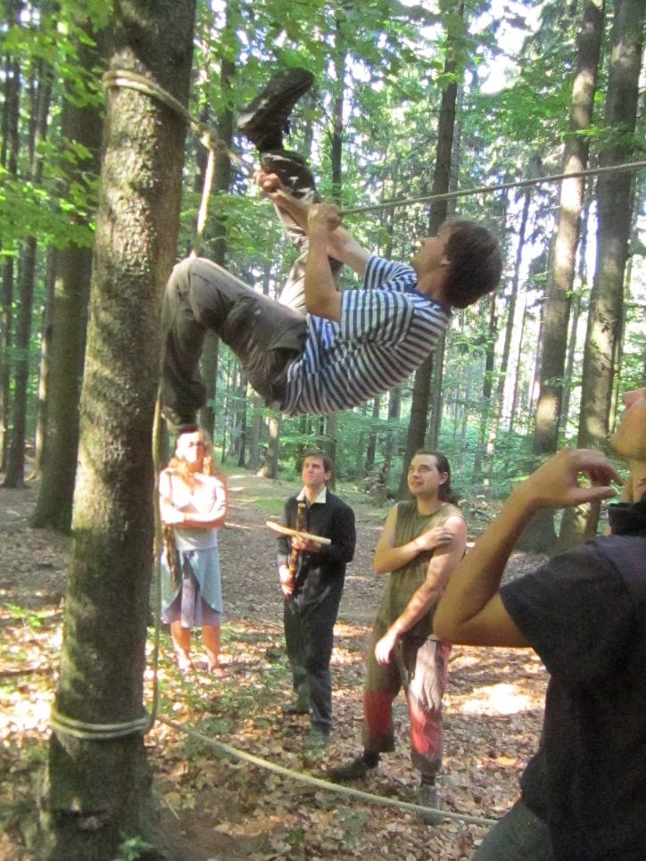 Sotvaže jsme ulehli a upadli do nekonečna, přičemž někteří z nás, to ani nestihli, tak začala znít tajemná hudba a do stanu se vřítili Pirát, Jirka, Majda a Ráďa a začali nás burcovat ku vstávání.