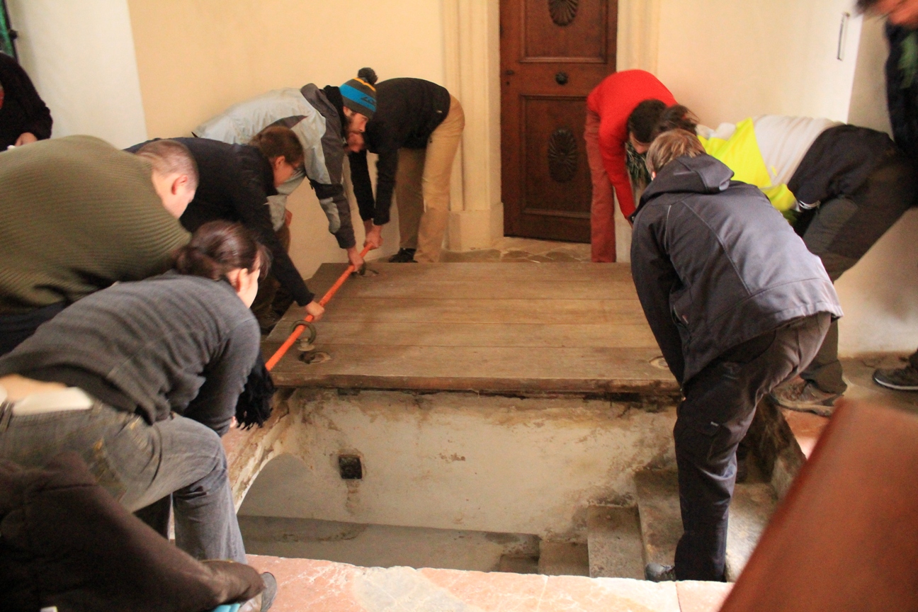 V pondělí na nás čekalo ještě další překvapení, paní Janíčková nás vzala do hrobky. S dřevěným poklopem jsme zápasili dlouho, už jsme ztráceli víru v to, že se tam podíváme. Naštěstí přiskočila Laďka a s její vírou a sílou jsme poklop zvedli. O hrobce Vám nic psát nebudu. Všichni jsme tam byli (chacháá Radim s Žandou né). Myslím, že to v nás všech zanechá silné vzpomínky.